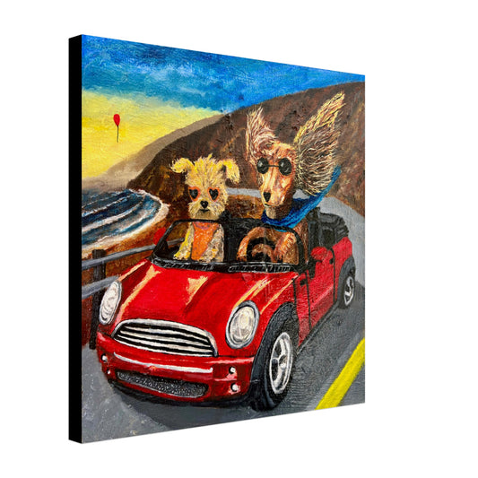 Furry Road Trip - Original 12x12 Oil Painting | Dachshund & Yorkshire Terrier Art